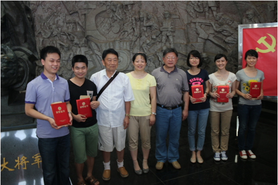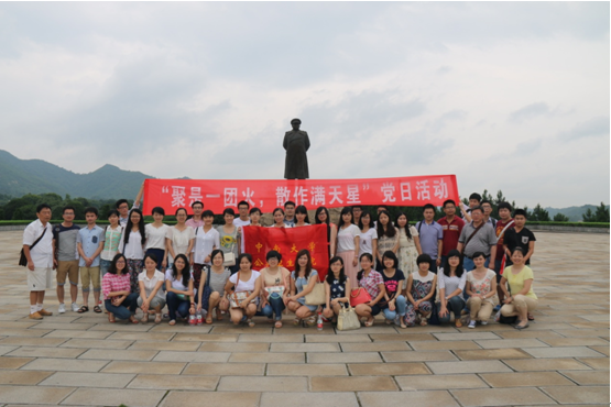 研究生党支部在2014年6月19日组织了50余名研究生党员,于湘潭市彭德怀故居成功开展了以“聚是一团火,散是满天星”为主题的党日活动。