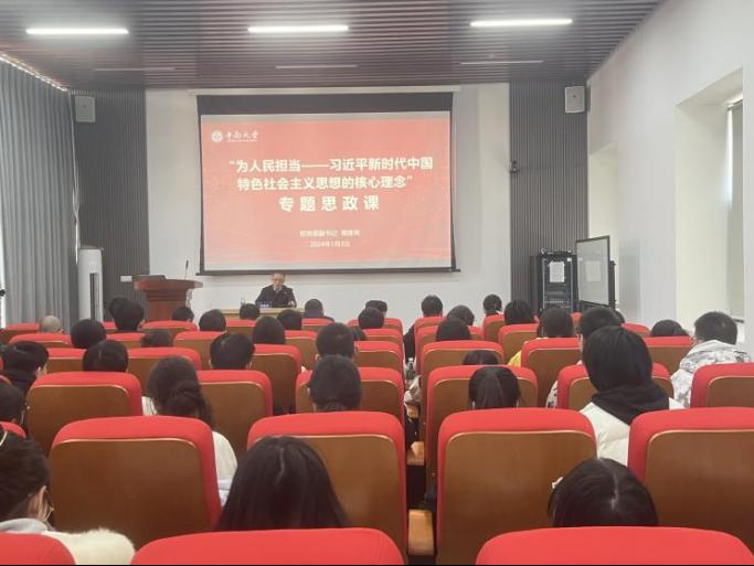 师生代表讲授专题思政课,主题为“为人民担当——习近平新时代中国特色社会主义思想的核心理念”,今日看料
