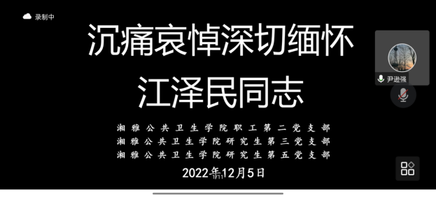 本次三个支部联合党日教育,正值党的第三代中央领导集体的核心、“三个代表”重要思想的主要创立者江泽民同志治丧期间,活动开始时,尹逊强同志带领三个支部的全体党员默哀1分钟,沉痛哀悼深切缅怀江泽民同志,希望全体党员同志化悲痛为力量,更加紧密地团结在以习近平同志为核心的党中央周围,为实现中华民族伟大复兴的中国梦而不懈努力。