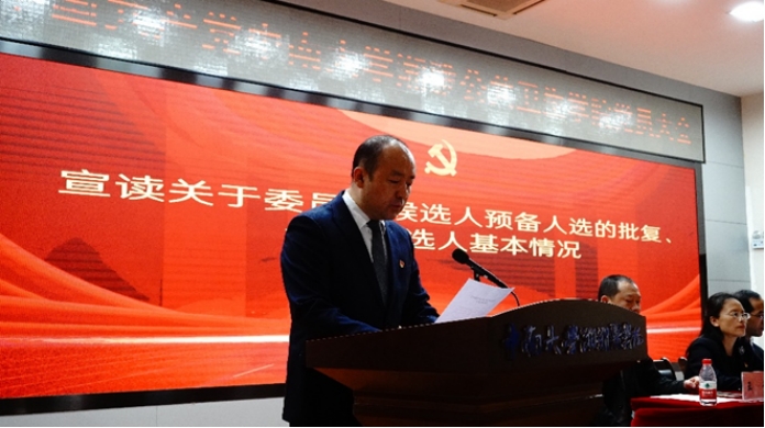 新一届党委委员。校党委组织部副部长张志宏出席会议,学院全体师生党员参加大会,会议由学院党委副书记王超主持。