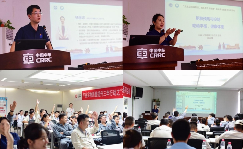 科技厅参观结束后,志愿团队随即赴中车株洲电力机车公司涂装事业部机车部,成功举办了一场科普宣讲。宣讲活动由学院教工第三党支部陈继华书记主持,杨丽娜副教授主讲“肥胖预防与控制—吃动平衡,健康体重”。讲座紧扣“健康中国”战略,针对员工健康现状,阐述肥胖类型与危害,倡导健康饮食。此次活动有效激发了企业员工健康管理热情,为营造健康职场环境打下了良好基础。
