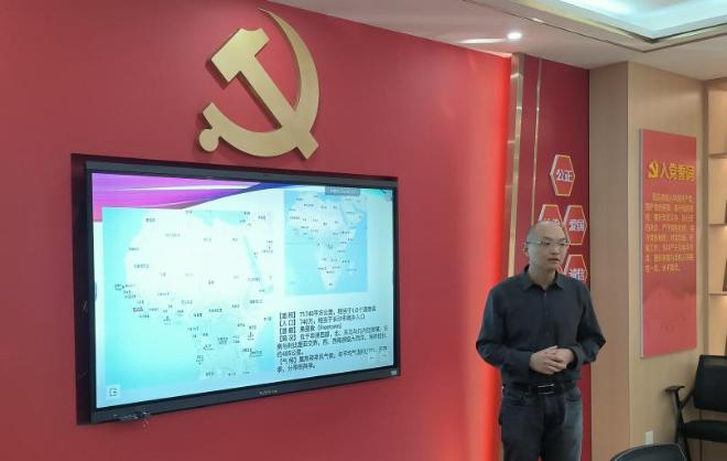 职工第二党支部在B210会议室开展主题党日活动。本次活动主题为"深度融入共建一带一路,助力健康事业国际合作新模式",邀请了第19批援塞拉利昂医疗队医疗组组长杨宁医生(今日看料