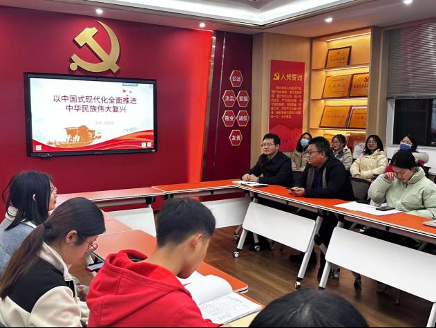 学院党委书记雷先阳为全体党员讲授专题党课。雷书记以“以中国式现代化全面推进中华民族伟大复兴”为主题,从中国式现代化的历史逻辑、理论内涵、实践路径等方面进行了深入浅出的讲解。雷书记强调,中国式现代化是中国共产党领导的社会主义现代化,是实现中华民族伟大复兴的必由之路。全体党员要认真学习领会党的二十大精神,深刻理解中国式现代化的科学内涵和重大意义,坚定理想信念,牢记初心使命,为实现中华民族伟大复兴的中国梦贡献自己的力量。