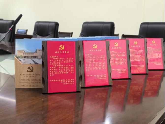 随后,雷先阳为2025届毕业生党员颁发了毕业纪念杯,为过政治生日的党员颁发了政治生日纪念牌。党员们在温暖的氛围中深切感受到了党组织的关怀,进一步增强了集体荣誉感与归属感。