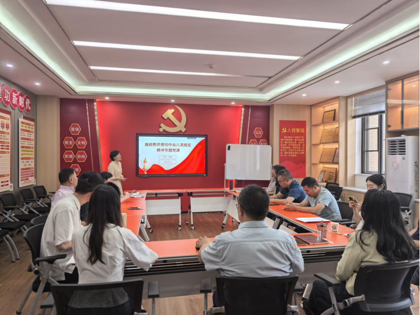 2025521日,职工第二党支部组织开展了深入贯彻中央八项规定精神学习教育专题党课学习,强化教师的纪律意识和责任担当,推动作风建设持续向好。党课由职工第二党支部书记冯湘玲主讲。