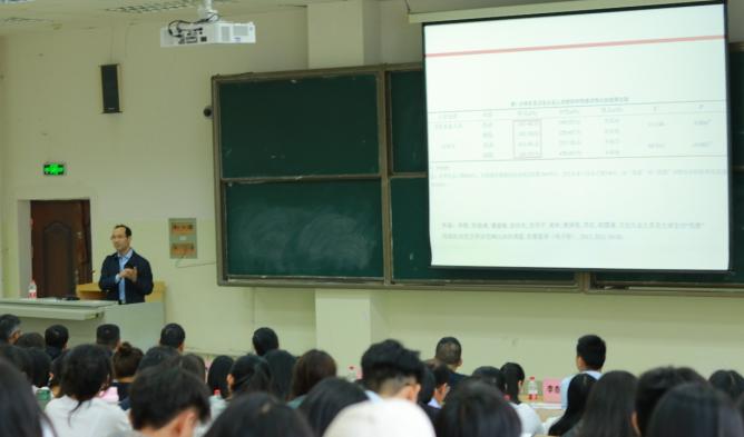 (图为学院胡国清院长作学术交流报告)