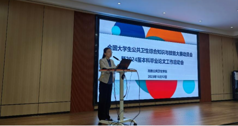 全国大学生公共卫生综合知识与技能大赛动员会暨2024届本科毕业论文撰写专题讲座在学院学术报告厅顺利召开。学院副院长李杏莉、院党委委员尹逊强,邓静副教授、学院业务办成员和预防医学专业2019级全体本科生共90余人参与会议。会议由业务办主任李敏主持。