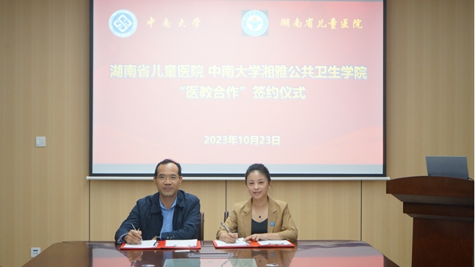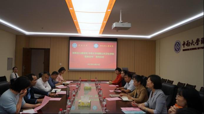 胡国清院长对湖南省儿童医院领导及专家一行的到访表示热烈欢迎。秦家碧副院长从学院发展历程、人才培养、师资队伍、科学研究、国际合作与交流、社会服务和平台建设等方面简要介绍了学院的基本情况和近年来取得的成绩。湖南省儿童医院骨科团队介绍了建设国家重点实验室的合作想法,健康管理中心负责人蔡姿丽介绍了其中心的服务内涵和外延。双方领导就开展“医教合作”达成一致,签订合作协议,并就合作的具体细节进行了深度讨论与交流。