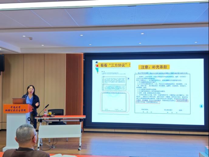 学长学姐的真实简历,详细介绍了标准简历的六大模块;在网签系统部分,分别给毕业生们介绍了电子签约和纸质签约的具体流程和注意事项;在就业权益政策部分,帮助大家详细区分了两方协议和三方协议,并以真实案例呈现毕业生曾在协议签署中踩过的“坑”,带领大家认真解读了协议补充条款的注意事项。讲解深入浅出,干货满满。