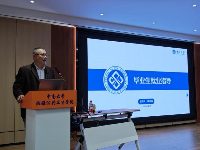 就业指导中心谢沛铭老师受邀出席并主讲,学院学工办副主任尹逊强老师主持,2024届全体毕业生参加。