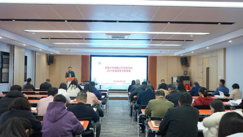 大会首先按照学校党委要求进行2023年度中层领导干部述职考核,雷先阳书记代表学院领导班子做2023年度工作述职报告。他全面梳理了学院一年来的主要工作、取得的成绩、存在的不足以及未来的规划,院领导个人进行书面述职。雷书记强调,全体教职工要以此为契机,进一步统一思想、凝聚共识,为学院的持续发展贡献力量。随后,胡国清院长宣读了测评表填写注意事项,现场开展了对全体院领导的年度考核测评工作。