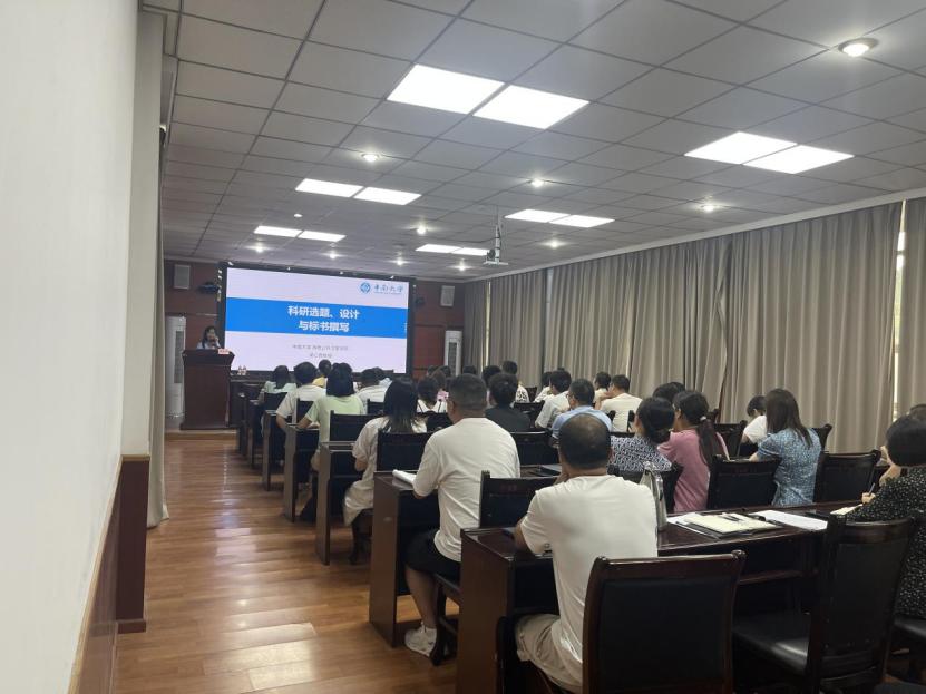 会谈结束后,吴心音教授为南充疾控中心各科室的科研骨干举行了主题为“科研选题、设计与标书撰写”的专题讲座。吴教授凭借其深厚的学术背景和丰富的实践经验,深入浅出地讲解了如何精准定位科研方向、科学设计研究方案及撰写高质量的标书。吴教授的讲座不仅为南充疾控中心的科研骨干提供了宝贵的科研知识,还激发了大家对科研工作的热情和信心,为双方未来的科研合作奠定了坚实的基础。