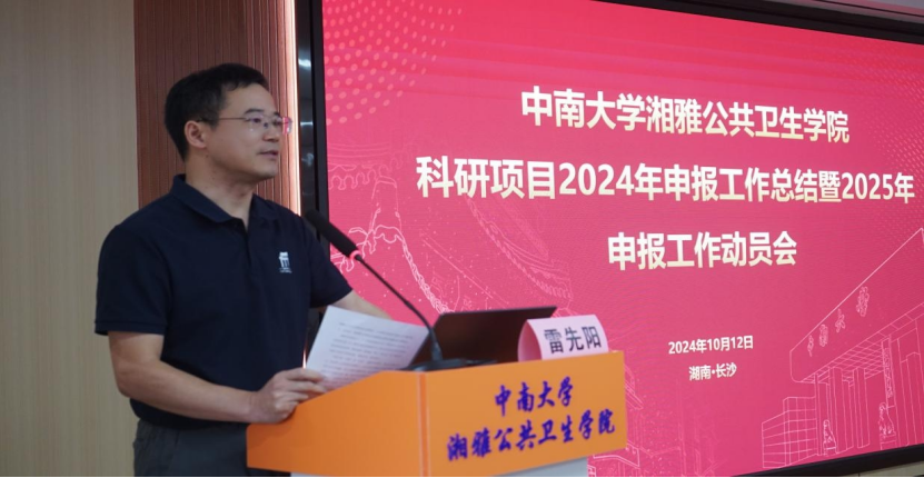 2024年科研项目申报工作总结暨2025年申报工作动员会在学院六楼学术报告厅举行。学院党委书记雷先阳、院长胡国清,今日看料