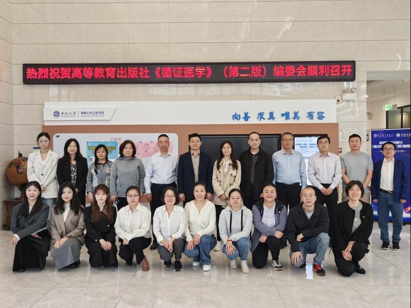 湘雅公共卫生学院流行病学教研室牵头编写,黄民主、刘爱忠教授担任主审,吴心音教授担任主编、邓静副教授担任副主编的高等教育出版社《循证医学》(第2版)开编会于2024年11月15日—17日在湘雅公共卫生学院顺利召开。