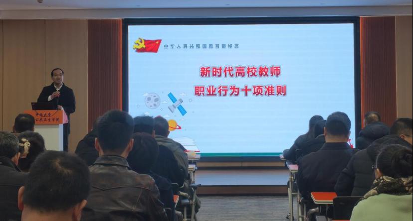 会上,胡国清逐一宣读了《新时代高校教师职业行为十项准则》,并通过实际案例开展警示教育,要求大家要认真领会准则精神,进一步增强教师的责任感、使命感,时刻做到“自重、自省、自警、自励”,自觉做到以德立身,以德立学,以德施教,自觉维护教师职业形象,提振师道尊严。