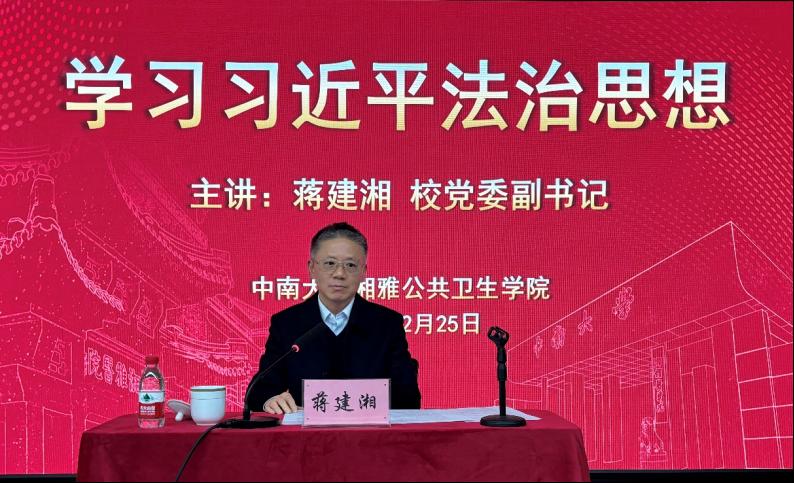 在学院六楼学术报告厅举行思政课学习暨党委理论学习中心组学习交流会,校党委副书记蒋建湘教授为学院师生讲授了主题为《学习习近平法治思想》的专题思政课。学院党委班子成员、职工第一党支部全体党员、学生党员代表以及计算机学院师生党员代表共计100余人参加了此次学习,今日看料
