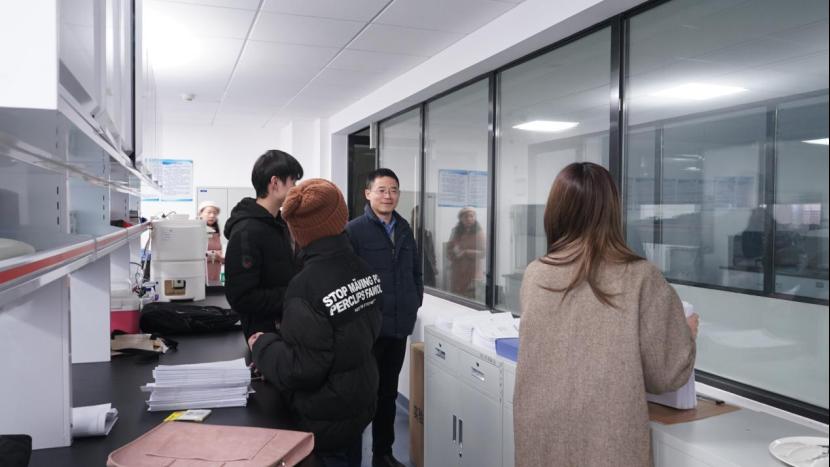 检查组一行首先来到学院的实验室区域,详细查看了实验的样品储存、安全实施以及实验室安全制度和责任落实情况。雷先阳书记强调,实验室是教学和科研的重要场所,必须严格落实各项安全措施,确保师生安全。