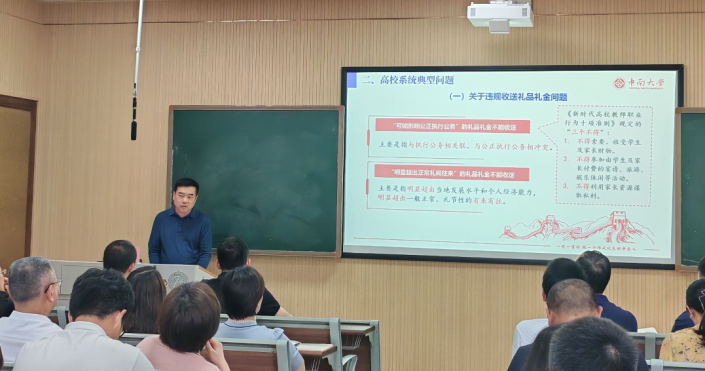 113教室作了题为“做一个作风优良的中南人”的纪律教育专题宣讲,学院党政班子成员、全体教职工参加了会议,会议由院党委书记雷先阳主持。