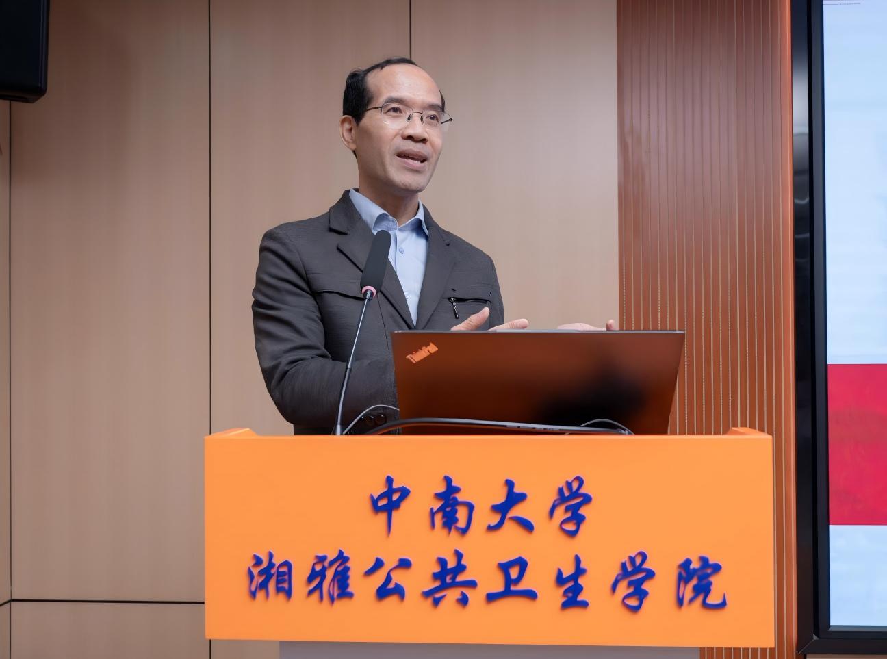 院长胡国清在会上作了题为《百年传承·公卫先驱》的学院发展报告,系统梳理了学院深厚的历史底蕴与蓬勃的发展现状。报告从1914年湘雅医学院的创办者颜福庆教授首开“卫生学”课程讲起,历数了湘雅公卫人抗战时期揭露日军细菌战罪行的英勇事迹、新中国成立初期开办“公卫专科班”的拓荒之举,清晰地勾勒出一条“服务国家、护卫人民” 的湘雅公卫精神主线。