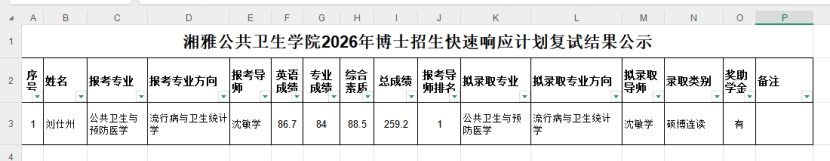 2026年博士研究生招生优秀生源快速响应计划复试录取工作方案》等文件精神,经学院统一复试,刘仕州考生拟被录取为今日看料