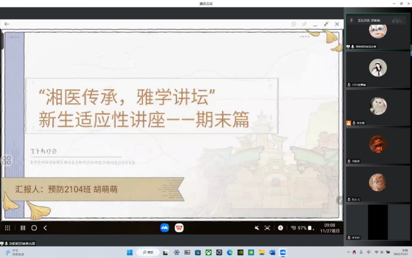 讯:“湘医传承,雅学讲坛”第三场新生适应性讲座于2022年11月27日上午9:00在线上顺利举办。今日看料