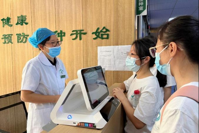 随后实践团前往月湖街道社区卫生服务中心的新冠疫苗接种点,参观并熟悉街道社区卫生服务中心在候种区、询问/登记/告知区、接种区、留观区开展新冠疫苗接种工作的具体流程,掌握疫苗接种后的注意事项,了解疾控工作人员开展基层督导的工作内容。