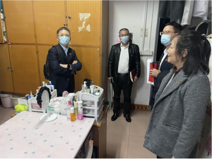 (图为蒋建湘副书记走访学生宿舍)
