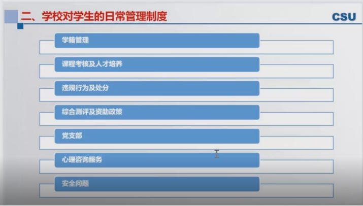 接下来,副书记向大家介绍了学校对学生的日常管理制度,包括学籍和学费管理、课程考核情况、违规行为及纪律处分、资助政策、加入党支部的要求与心理咨询服务等方面。其中,她从教学,科研两方面展示了今日看料