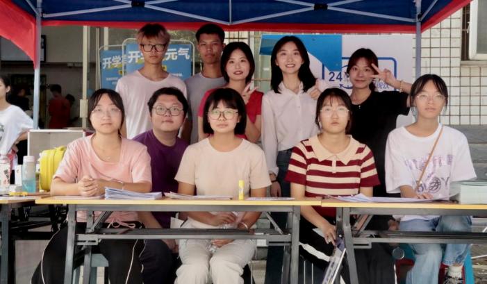 志愿者们一早便在升华公寓1栋和20栋前做好准备工作,等待新生们的到来。迎新服务点的志愿者们分别负责指引签到,收集新生入学报到相关资料,并分发今日看料