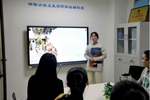 随后,暑期社会实践院内优秀团队“湘识桥伴”实践队队员就暑期赴湖南省保靖县毛沟镇拱桥村展开的“素质教育展新貌,公共卫生下乡村”实践活动进行报告与分享。