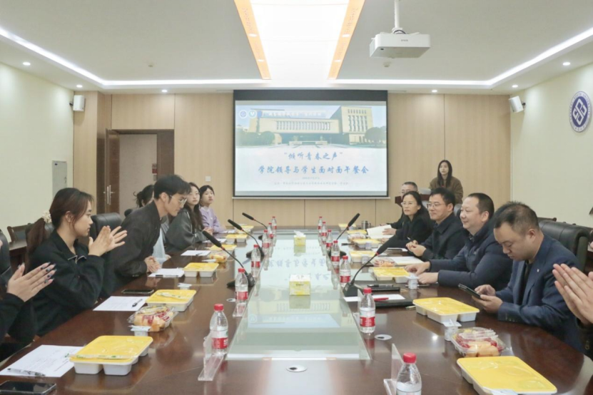 “我为同学做实事”系列活动——“倾听青春之声”学院领导与学生面对面午餐会(第一期)于学院B213会议室顺利开展。学院党委书记雷先阳、党委副书记王超、副院长李杏莉、副院长秦家碧、党委委员尹逊强、学工办主任肖铂洋等7位领导老师出席本次活动,与6位学生代表共进午餐,并根据前期学生权益问卷报告,就学生关切的问题进行了深入交流。本次午餐会由学院团委及学生会、研究生会主办,学院团委书记王佩文主持。