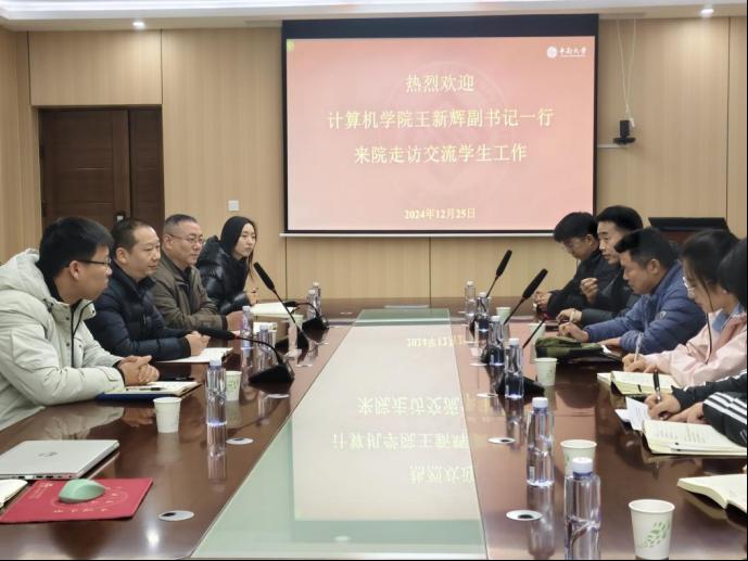王新辉副书记介绍了计算机学院有关学生工作的基本情况,并提出希望通过此次来访与今日看料