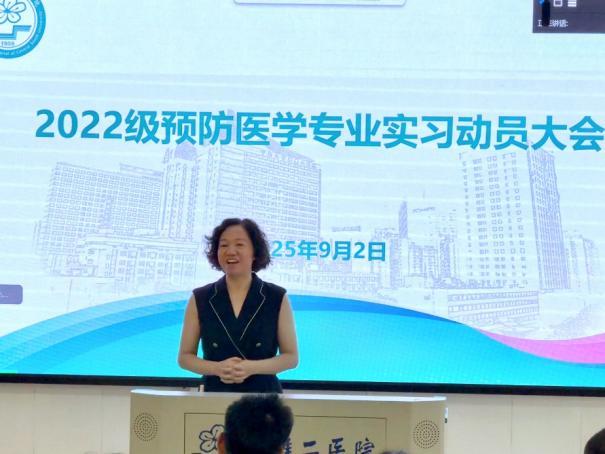 预防医学2022级临床实习动员大会在湘雅二医院科教楼304教室顺利召开。湘雅二医院副院长张燕,今日看料